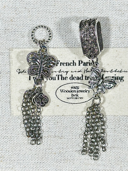古银色蝴蝶流苏安全链
