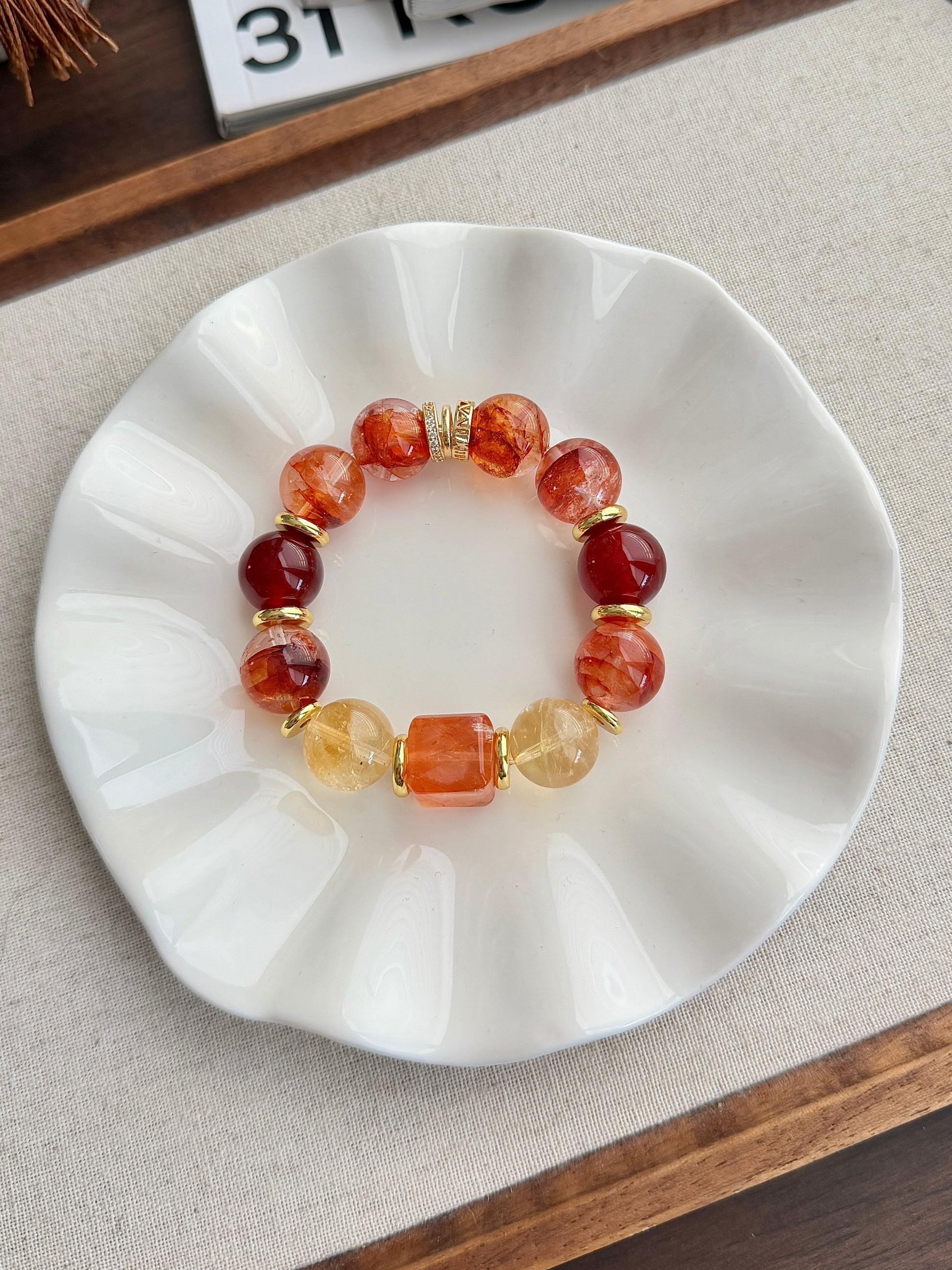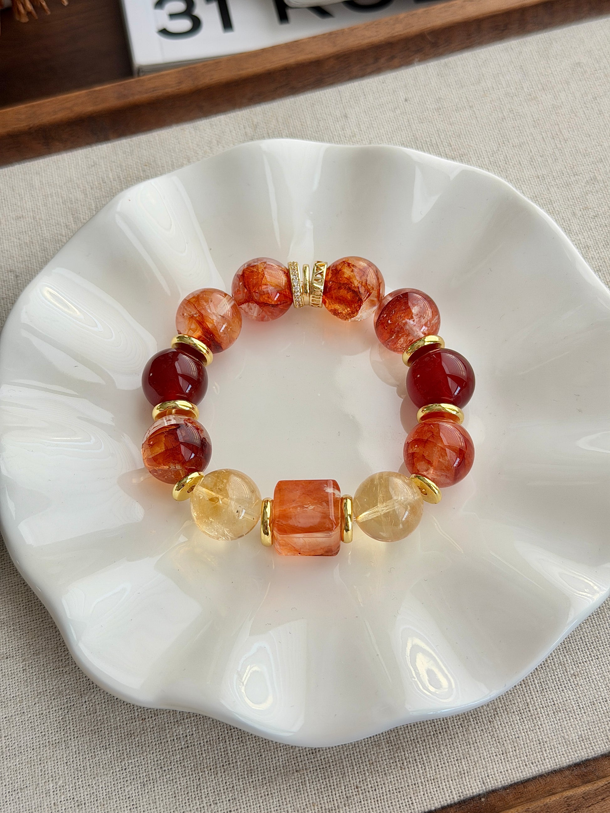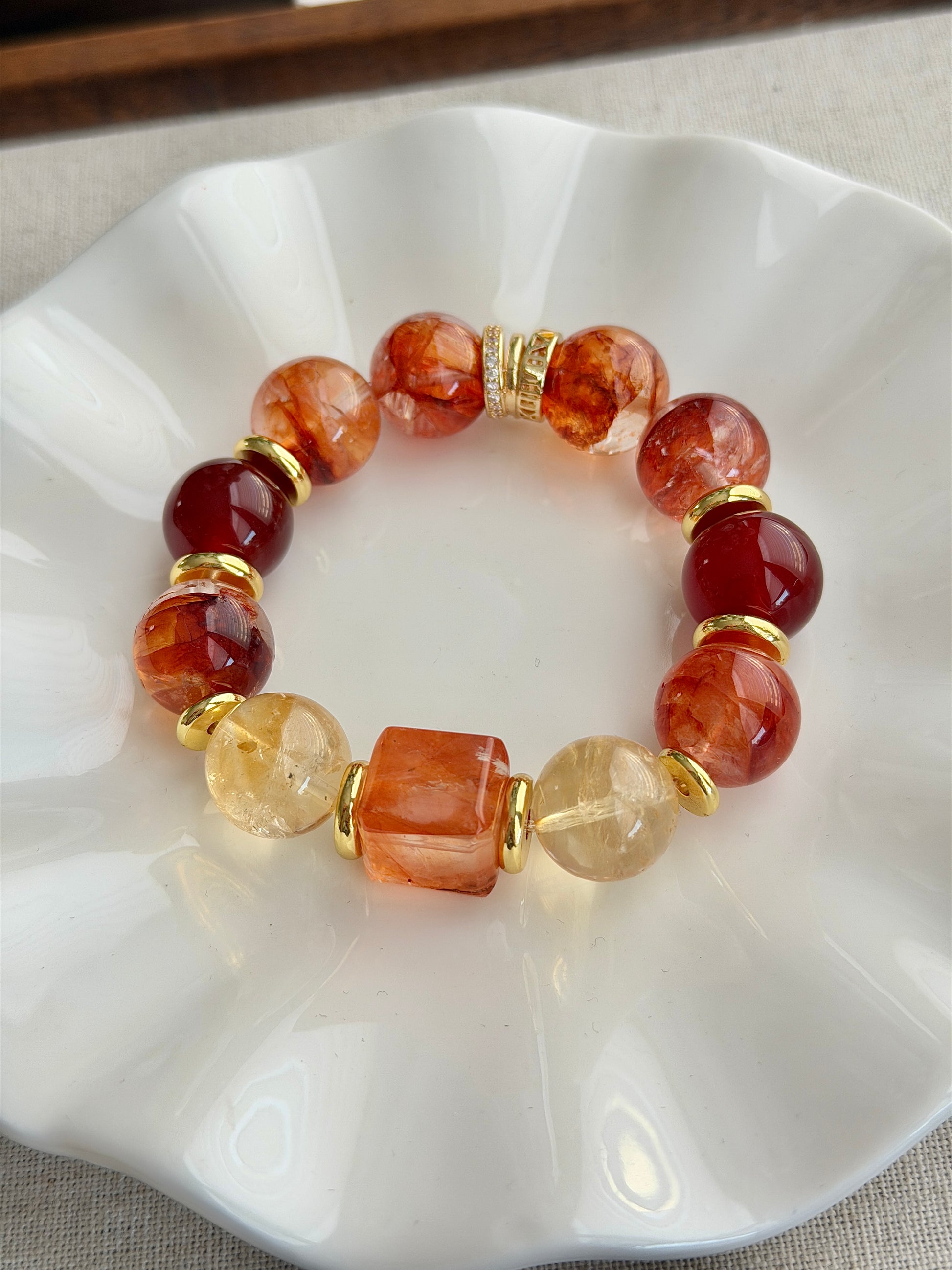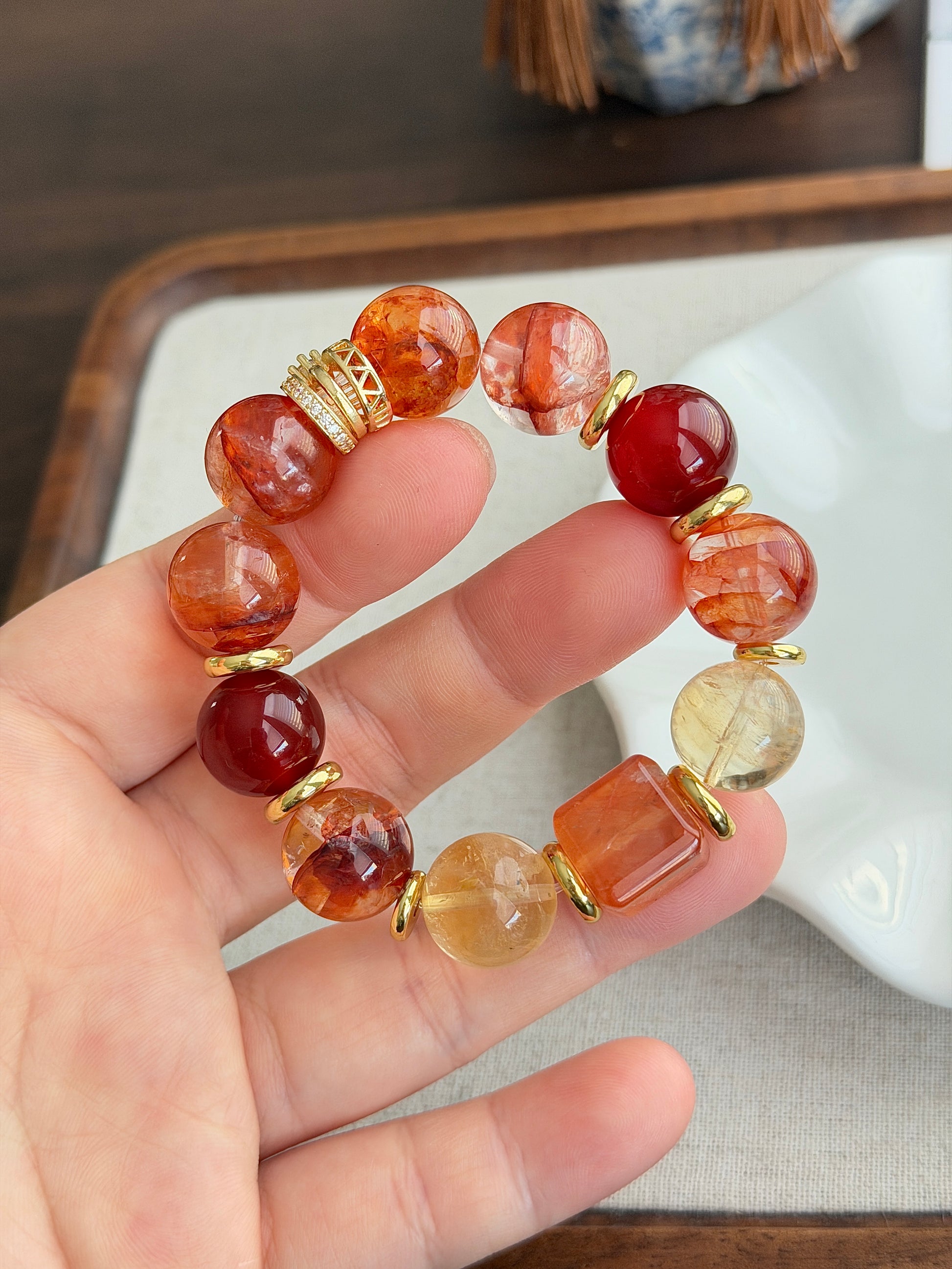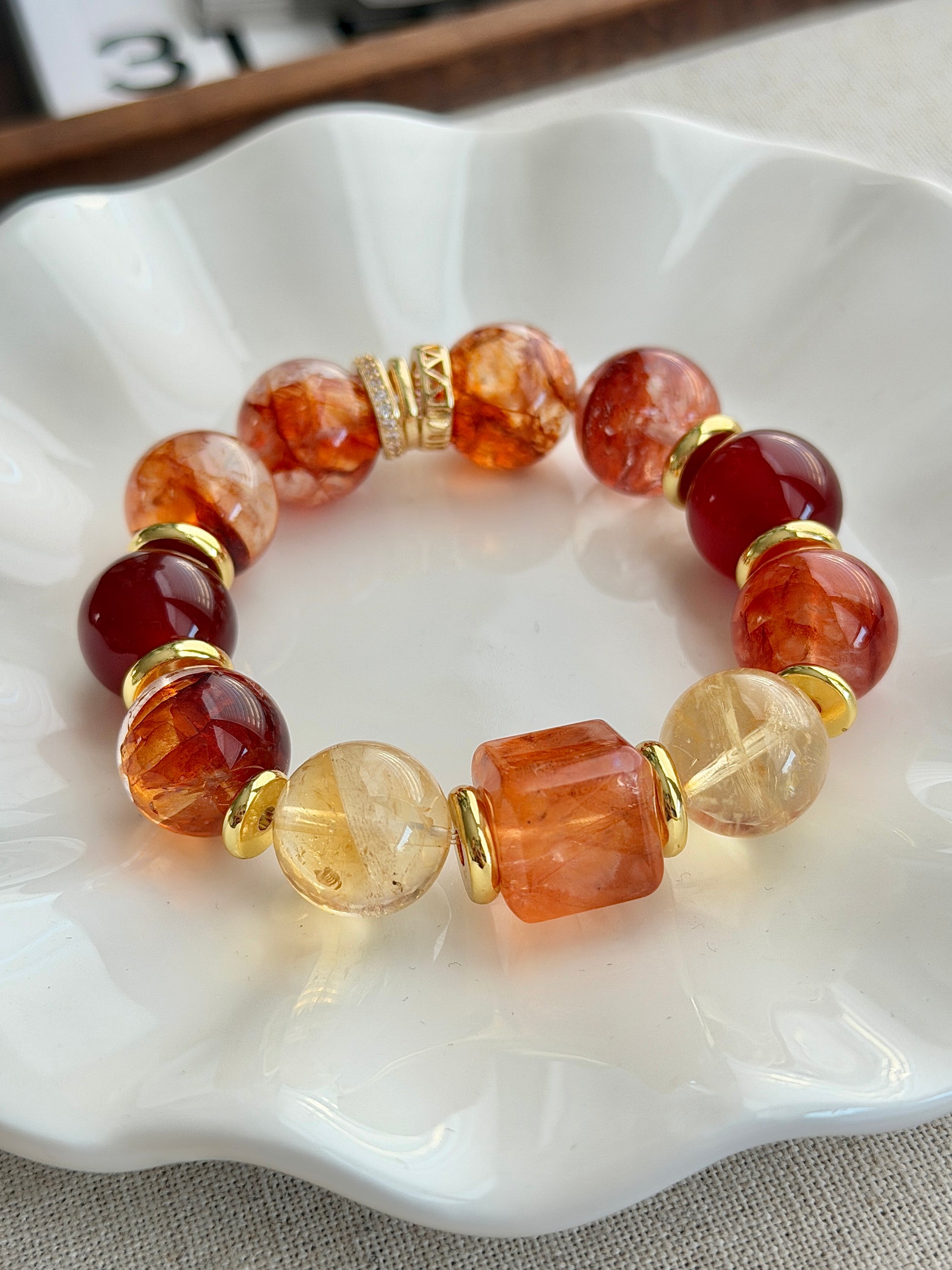 14mm+, 红胶花水晶, 冰黄阿赛黄水晶, 红玛瑙.