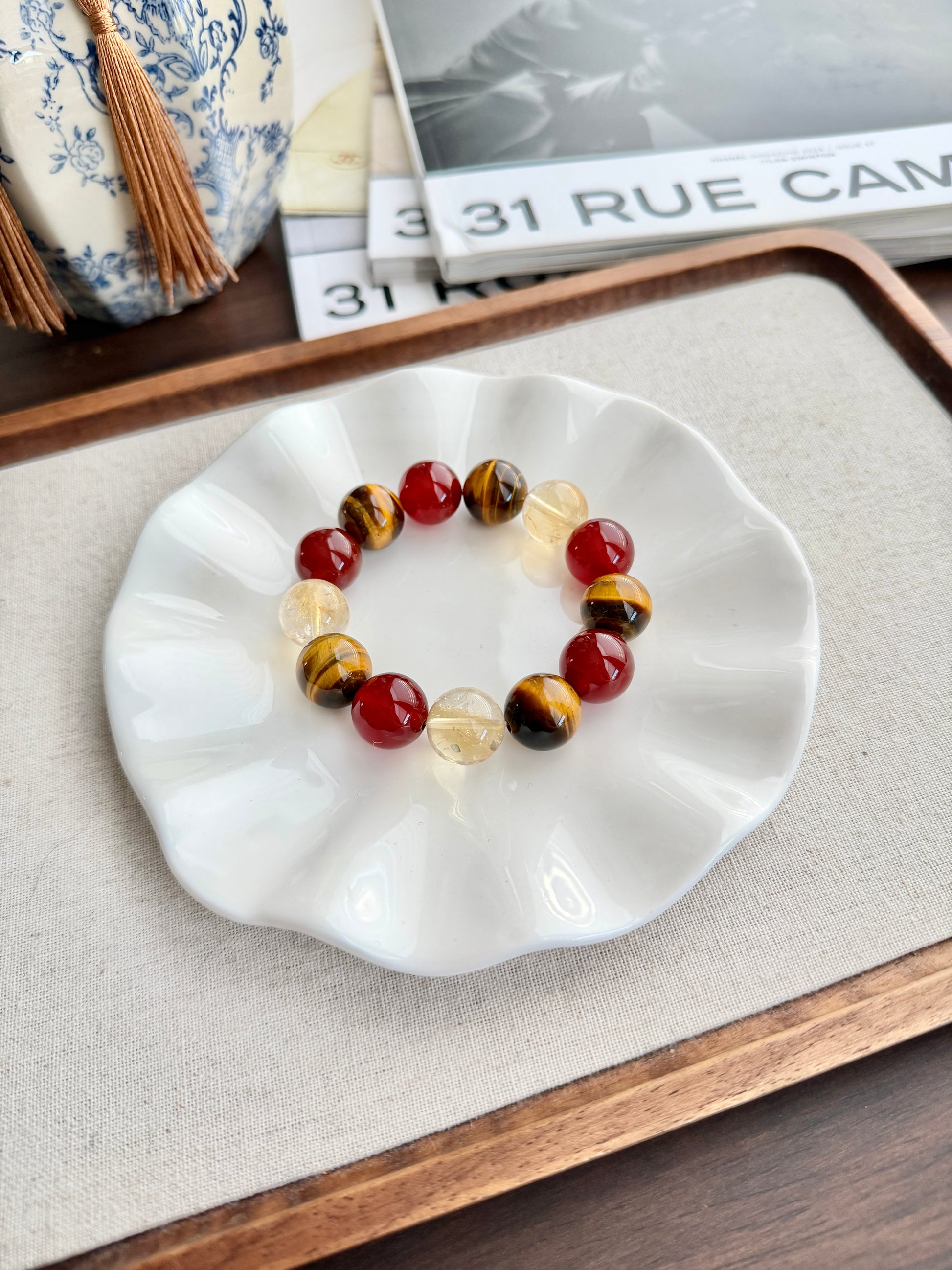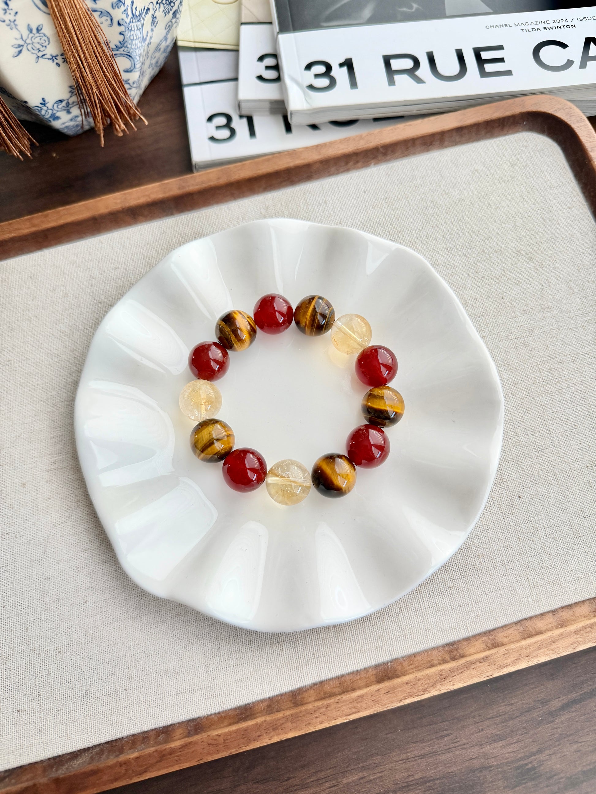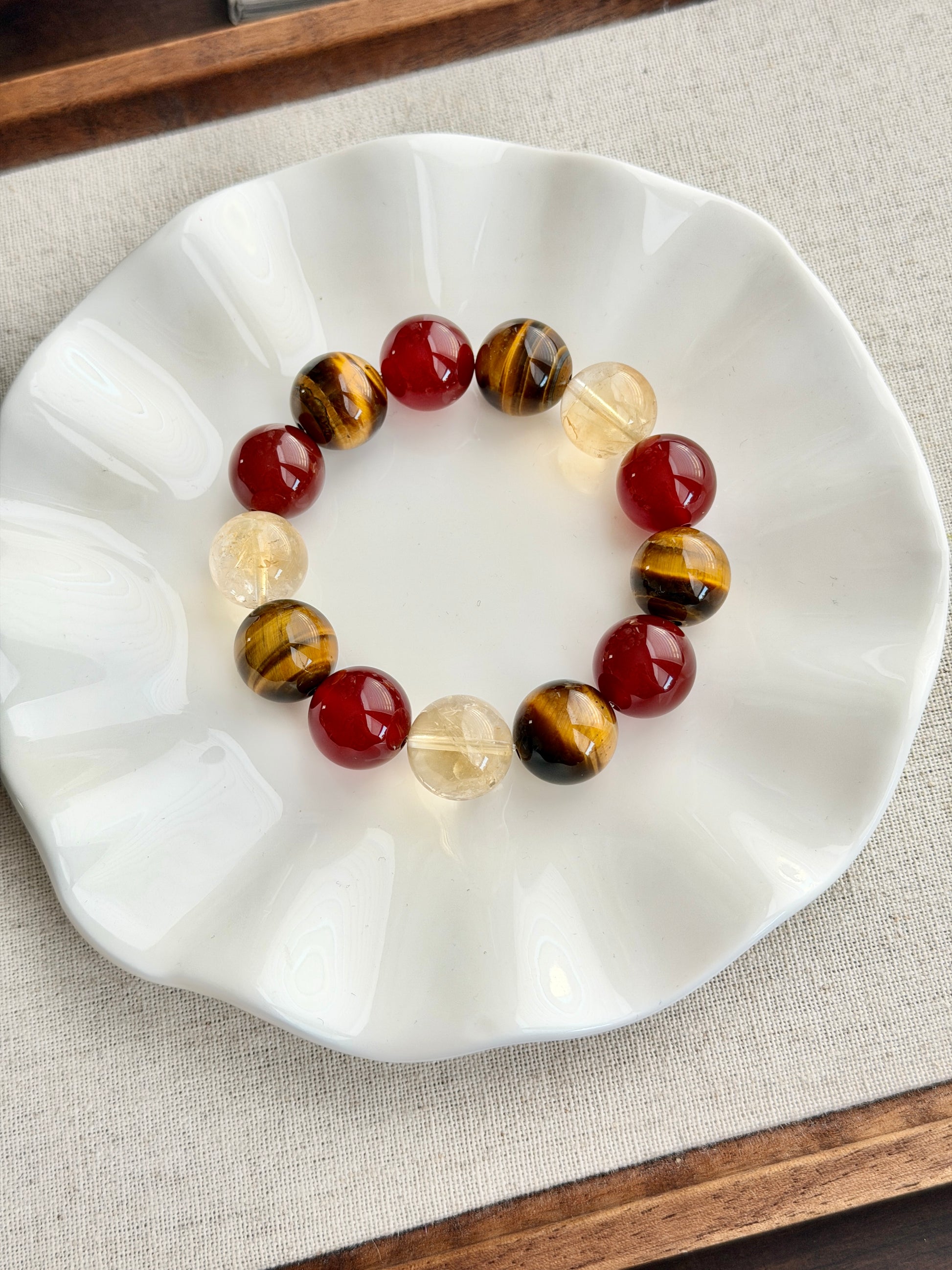 14mm+ 红玛瑙14mm+ 黄虎眼石14mm+ 冰黄阿赛黄水晶